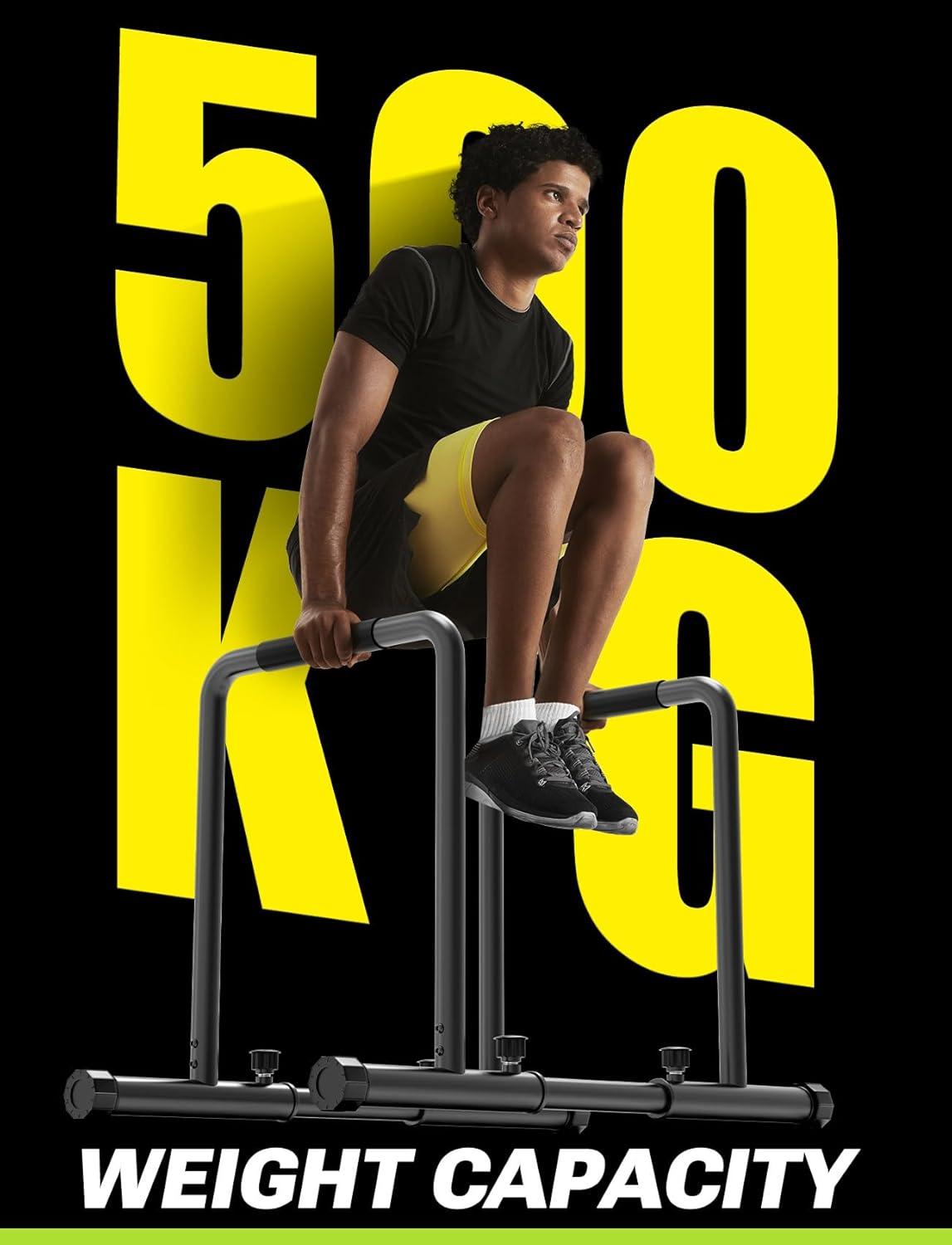 【Stable& Sturdy】 Yoleo dip bars are designed for increased stability and quality. Featuring 1100lbs weight capacity and double safety connector, it is perfect for a home gym, or a secondary dip station in a commercial gym. Instead of two free components, two safety stabilizers adjoin them at the floor to prevent slip and wobbling. This is the most unique and excellent design than other competitors