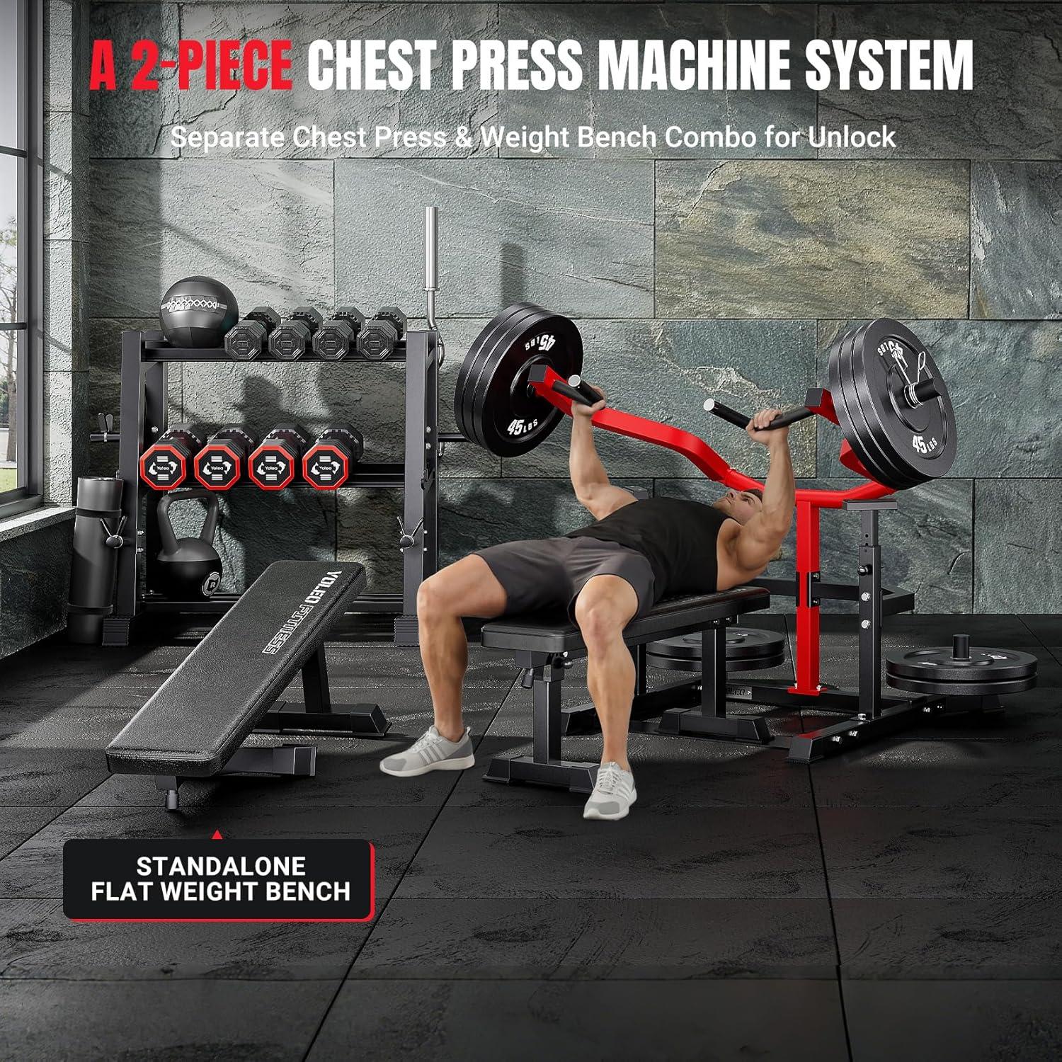 【2-in-1 System Training Flexibility】This 2-in-1 system unlocks superior versatility: use the separate chest press station for focused flat and incline presses, or detach the professional bench for shoulder presses, core workouts, and a wide range of free-weight exercises. This modularity effectively targets your chest, shoulders, triceps, and entire upper body, offering far more training options than a fixed single-unit machine.